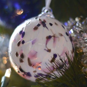 All of our hand blown glass ornaments are signed by the artist near the loop. Attached to the loop, with a satin ribbon, is an artist gift tag. The tag tells of this unique hand made product which celebrates Leones Glass handcrafted artisan approach.